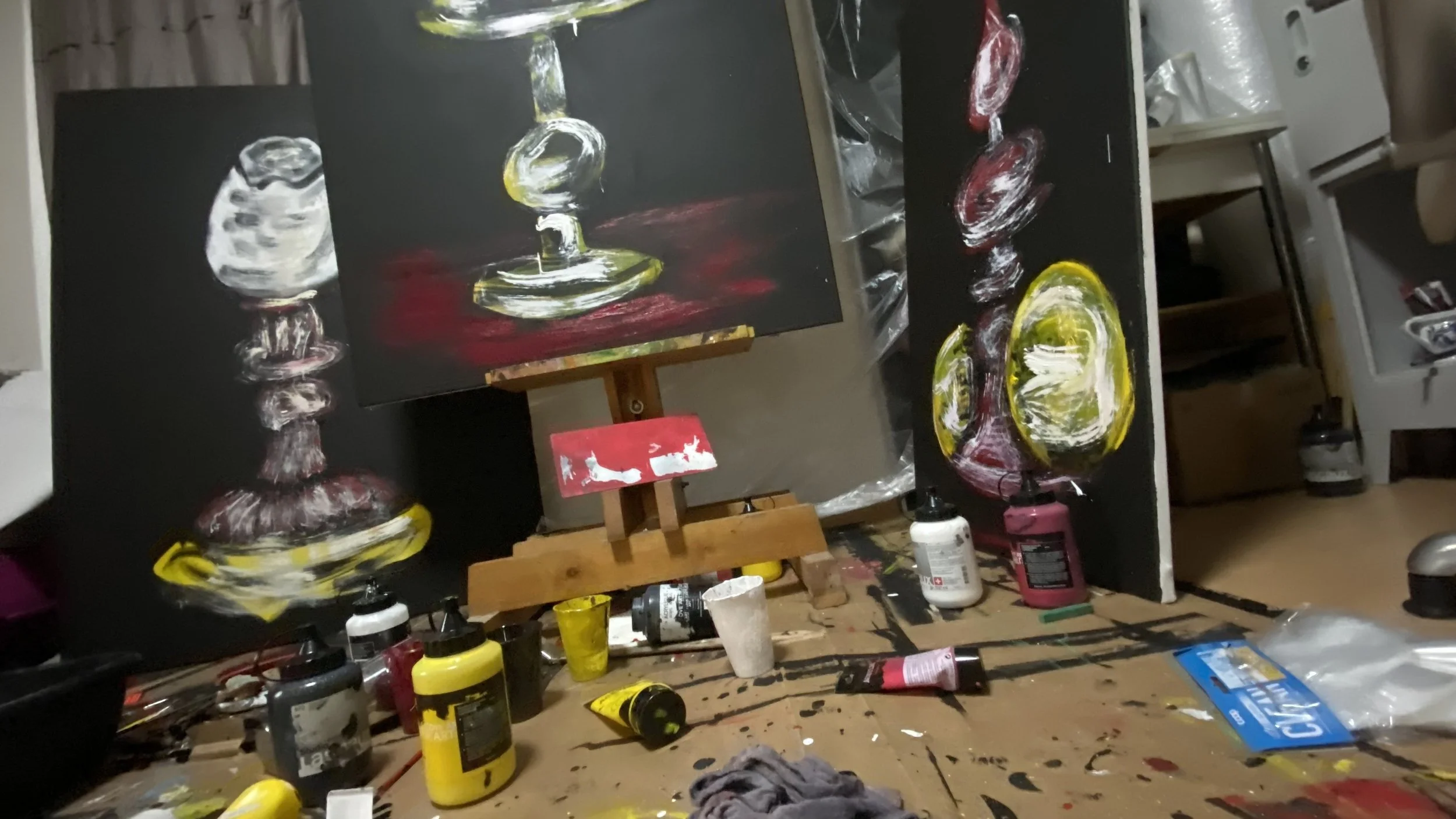 In meinem kleinen Raum, der kaum mehr als 4 Quadratmeter misst, entfaltet sich eine faszinierende Welt der Kreativität. Hier, in meinem Schlafzimmer, wo die Wände Geschichten flüstern, wird jeder Pinselstrich für mich zu einem Ausdruck der Freiheit. Es ist erstaunlich, wie ich in dieser bescheidenen Umgebung grosse Träume in noch grössere Werke verwandeln kann. Mit jedem Schlag meines Herzens, umgeben von dieser inspirierenden Energie, spüre ich, wie ich puste, frei in meine Farben eintauche. Für mich sind die Farbtöne nicht nur Farben; sie erzählen von Emotionen, Erinnerungen und tiefen Sehnsüchten. Der begrenzte Raum wird für mich nicht zum Hindernis, sondern zu einer inspirierenden Leinwand, die meiner Kreativität die Freiheit schenkt, zu fliegen. Während ich arbeite, entfaltet sich das Bild in meinem Kopf Stück für Stück. Die Grösse meines Schaffens steht in starkem Kontrast zu dieser kleinen Ecke meines Lebens, und ich fühle, wie ich eine Verbindung zwischen meiner Innenwelt und der Aussenwelt herstelle. Jeder Pinselstrich wird zu einem Dialog mit mir selbst. Mein Schlafzimmer ist mein Zufluchtsort und gleichzeitig meine Bühne. Es ist faszinierend, wie viel Kraft der Vorstellung und des Ausdrucks in einem so kleinen Raum verborgen sein kann. Ich nehme die Herausforderung an und lasse mich inspirieren, denn wahre Kreativität kennt keine Grenzen. In der Einfachheit meiner Umgebung finde ich oft die tiefsten Wahrheiten und die stärkste Schönheit. In meinem Schlafzimmer entsteht Grosses nicht trotz der Enge, sondern gerade dank ihr.